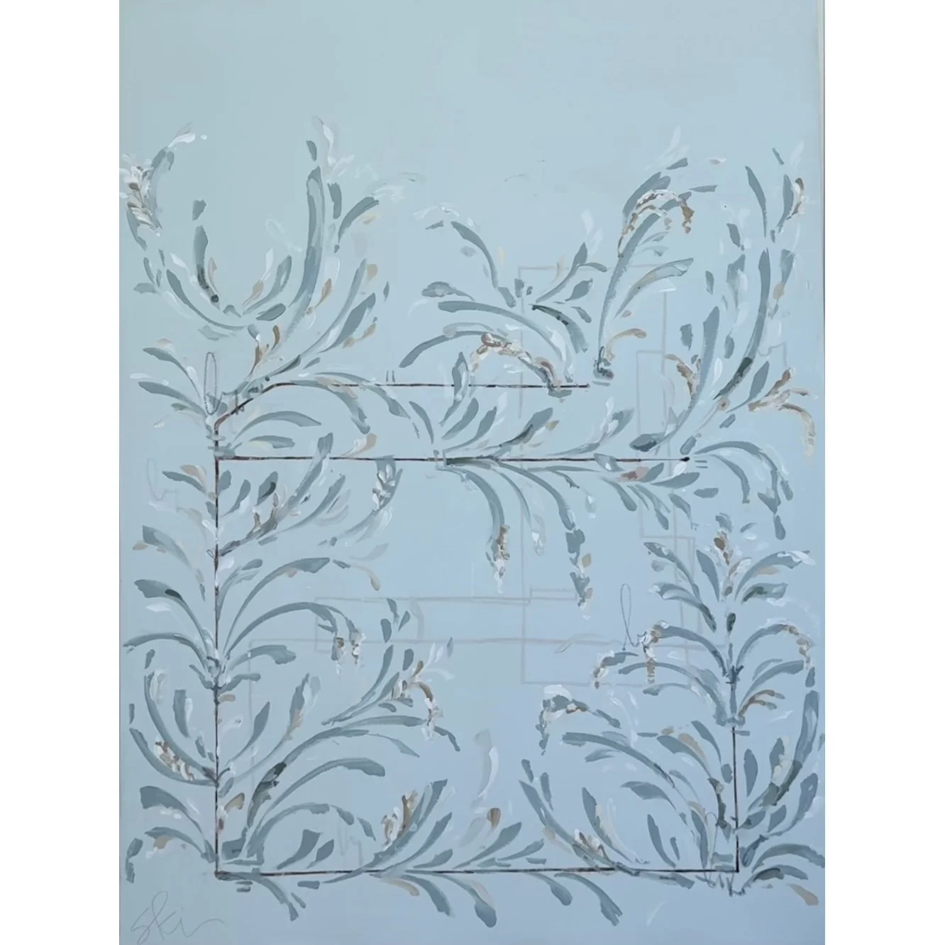“Love Birds” is a soft yet playful, tone-on-tone piece designed to bring an elevated presence to any space. Tiny birds are tucked quietly within the layers and serve as a hidden nod to the sweet connections we share with the people we find next to us. This painting adds personality in a refined, understated way, blending beautifully into dining rooms, bedrooms, or any area seeking a soothing, tasteful touch.